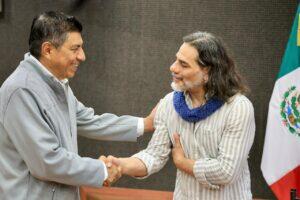 En el marco del Día de Reyes, junto a la directora general del Instituto Estatal de Creación Literaria y Promoción de la Lectura, Carmen Sánchez Parada, el gobernante oaxaqueño partió la tradicional rosca con las y los niños.