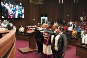 Por lo tanto, las y los profesionales de la salud Carlos Rigoberto Chacón Pérez, Myrna Hernández Martínez, Martha Nicolás Anaya, Héctor Matus Santiago y Javier Castellanos García, rindieron la protesta de ley ante el Pleno Legislativo.