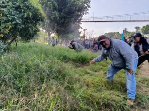 Acompañado por la diputada local Gabriela Pérez, autoridades municipales como el presidente Alejandro Díaz y los regidores Martín Morales y Alfonso Luna de La Rosa, así como la titular de la Secretaría de bienestar, Vilma Martínez Cortés; el mandatario fue recibido por vecinas y vecinos que se sumaron con entusiasmo a las labores de limpieza y recuperación del cauce.