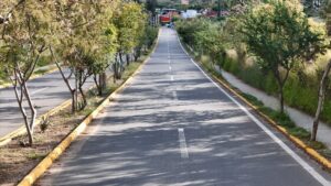 Con el objetivo de que esta nueva vialidad sea segura, se aplicaron trabajos de señalización vial, tales como: 2 mil 706 metros lineales de pintura en guarniciones de concreto, mil 400 metros lineales de raya separadora de sentidos de circulación y 2 mil 800 metros lineales de marcas para delimitación de carriles.