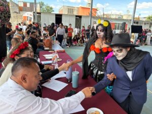 Gracias a la invitación recibida por parte de la institución educativa, el regidor asistió como juez al concurso de disfraces, en una jornada que destacó por su creatividad y el entusiasmo de la comunidad escolar. El evento incluyó la presentación de calaveritas literarias, una emotiva obra de teatro y la participación del grupo de danza, que ofreció una muestra artística llena de color y tradición.