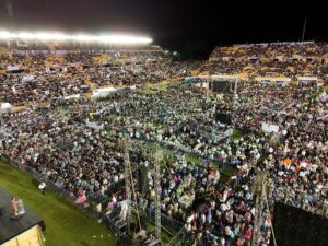 Oaxaca, 19 de septiembre. La presidente Claudia Sheinbaum Pardo presentó en Oaxaca -corazón cultural de México- los resultados de su primer año de gestión con impacto en esta entidad, ante miles de personas reunidas en el estadio del Tecnológico de la capital.